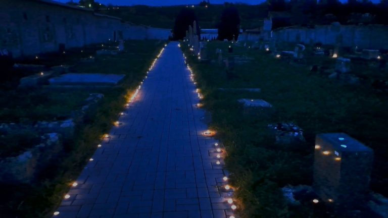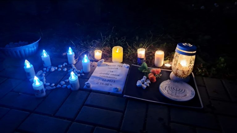 Zapálením 333 sviečok si na židovskom cintoríne v Spišskej Novej Vsi pripomenuli detské obete holokaustu. Spišská Nová Ves, 2. novembra 2023. Foto: SITA/Mária Frisová