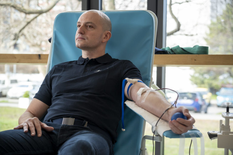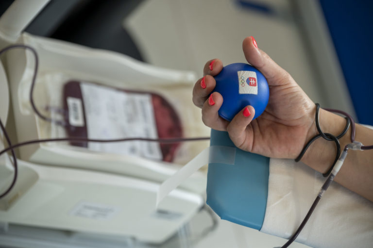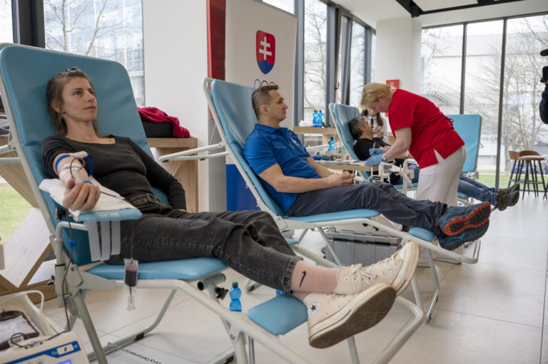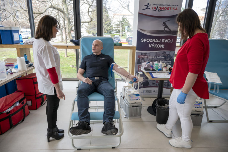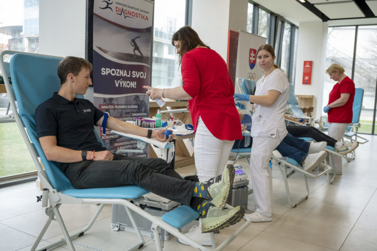 Odber krvi počas športovej kvapky krvi v Olympijskom centre v Dome športu v Bratislave. Bratislava, 21. február 2024. Foto: SITA/Milan Illík.
