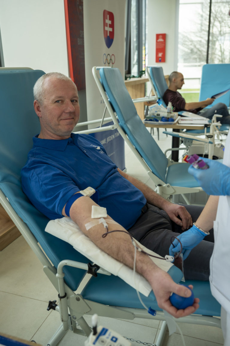 Riaditeľ Národného športového centra (NŠC) Vladimír Baluška (uprostred) počas športovej kvapky krvi v Olympijskom centre v Dome športu v Bratislave. Bratislava, 21. február 2024. Foto: SITA/Milan Illík.