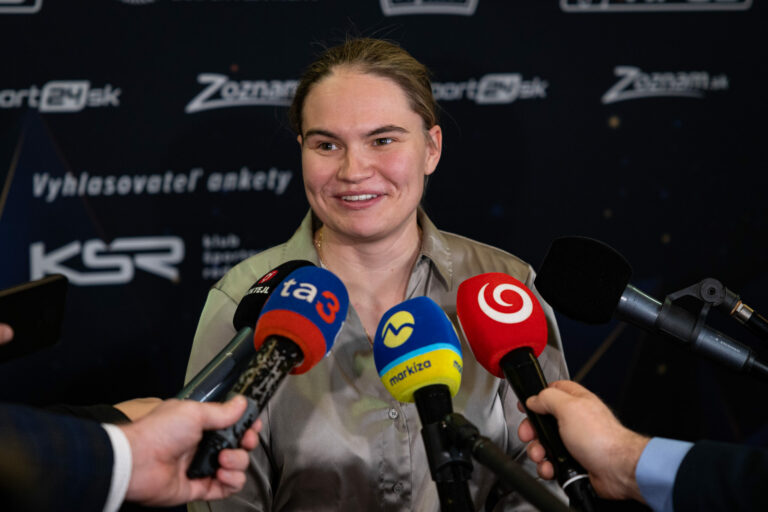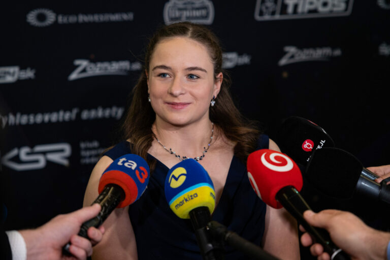 Slovenská cyklistka Viktória Chladoňová počas rozhovoru pred slávnostným udeľovaním ocenení v ankete Klubu športových redaktorov Športovec roka 2024. Bratislava, 3. február 2025. Foto: archívne, SITA/Jana Birošová