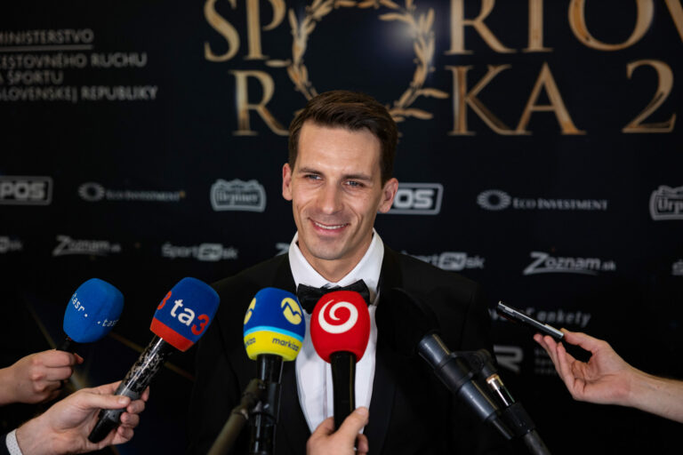 Vodný slalomár Matej Beňuš počas rozhovoru pred slávnostným udeľovaním ocenení v ankete Klubu športových redaktorov Športovec roka 2024. Bratislava, 3. február 2025. Foto: SITA/Jana Birošová