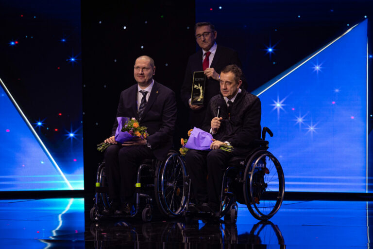 Sprava v popredí: Ocenení v kategórii Paralympionik roka - kolektív reprezentanti v parastolnom tenise Ján Riapoš a Peter Lovaš počas slávnostného udeľovania ocenení v ankete Klubu športových redaktorov Športovec roka 2024. Bratislava, 3. február 2025. Foto: SITA/Jana Birošová
