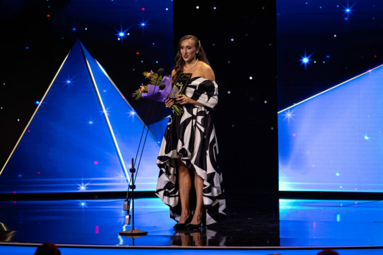 Atlétka Gabriela Gajanová získala ocenenie za druhé miesto v kategórii Športovec roka - jednotlivci počas slávnostného udeľovania ocenení v ankete Klubu športových redaktorov Športovec roka 2024. Bratislava, 3. február 2025. Foto: SITA/Jana Birošová