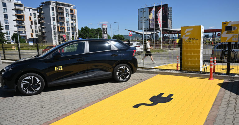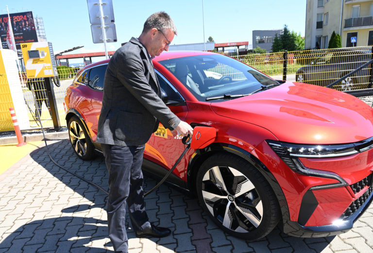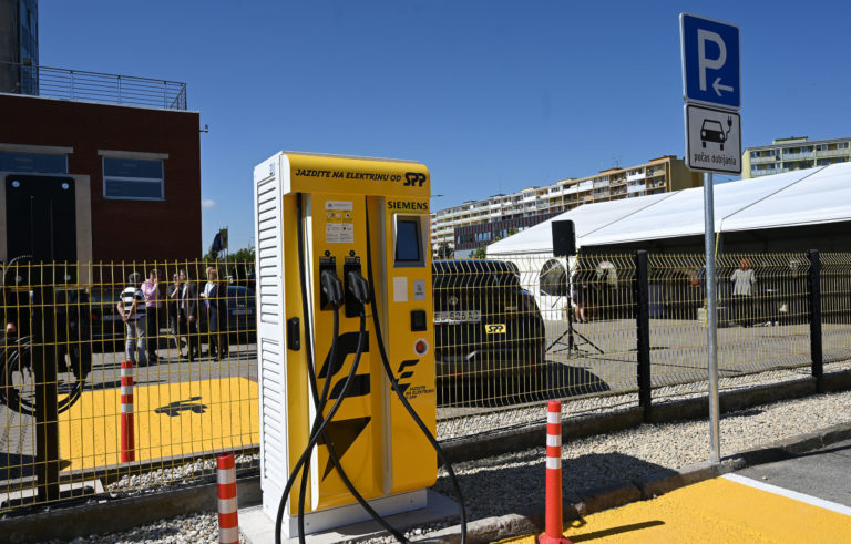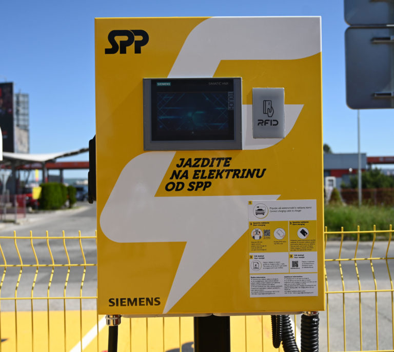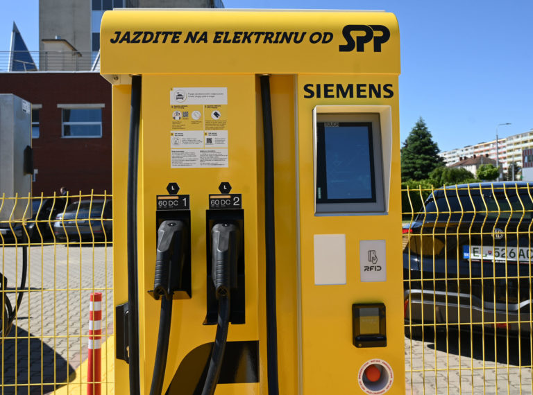 Otvorenie nových elektrických nabíjačiek pre automobily v areáli spoločnosti Slovenský plynárenský priemysel (SPP) v Košiciach. Košice, 16. máj 2024. Foto: SITA/Viktor Zamborský.