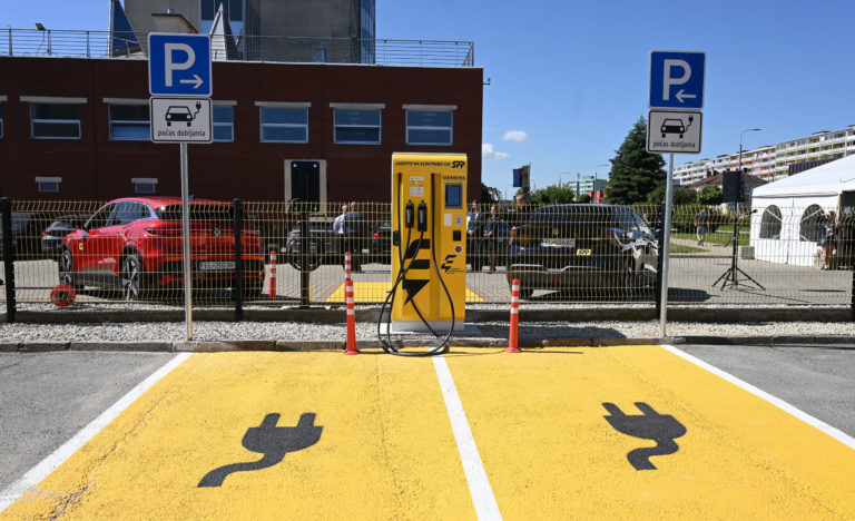 Otvorenie nových elektrických nabíjačiek pre automobily verejnosti v areáli spoločnosti Slovenský plynárenský priemysel (SPP) v Košiciach. Košice, 16. máj 2024. Foto: SITA/Viktor Zamborský.