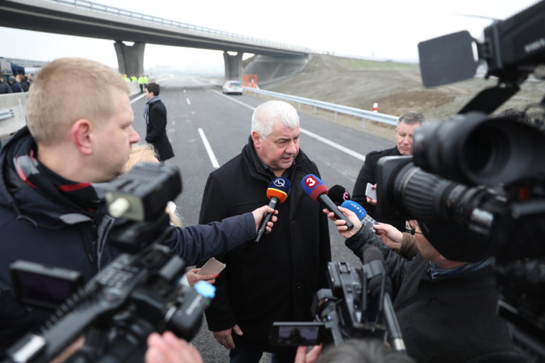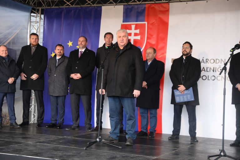Atmosféra počas otvorenia úseku D1 Budimír - Bidovce za účasti ministra dopravy a výstavby, generálneho riaditeľa NDS a ďalších hostí. Košice, 16. december 2019. Foto: SITA/Marek Lukáč