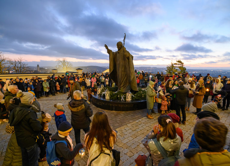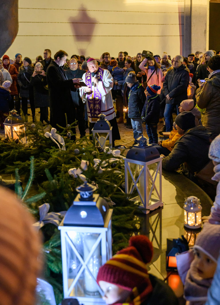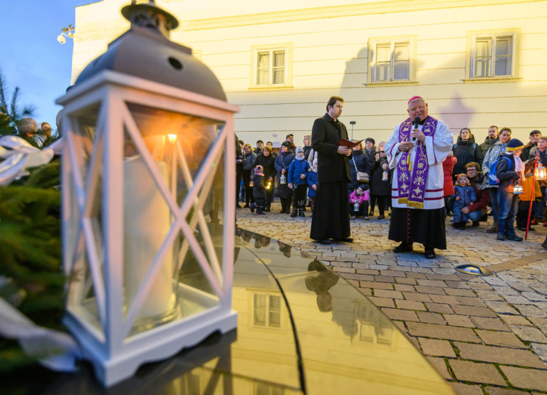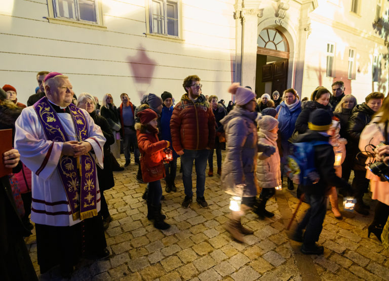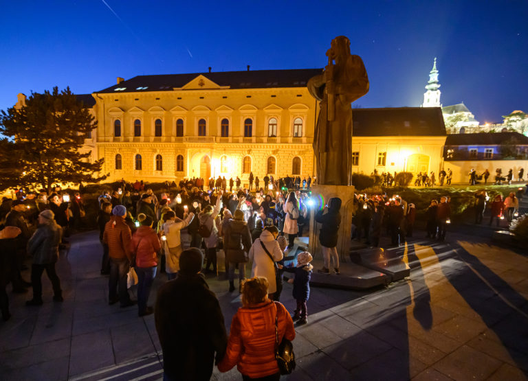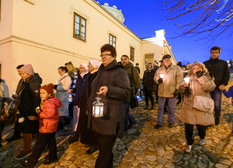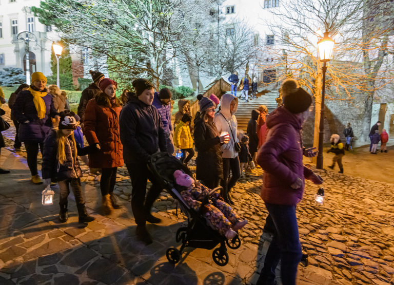 Sprievod svetla Via Noce z Nitrianskeho hradu do centra mesta, ktorý v rámci prvej adventnej nedele pripravilo Nitrianske biskupstvo v spolupráci s mestom. Nitra, 27. november 2022. Foto: SITA/Martin Havran