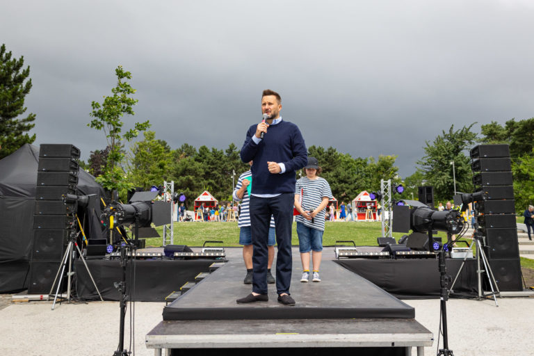 Primátor Bratislavy Matúš Vallo počas oficiálneho obnovenia prevádzky fontány Družba na bratislavskom Námestí slobody. Bratislava, 24. jún 2023. Foto: SITA/Jana Birošová.