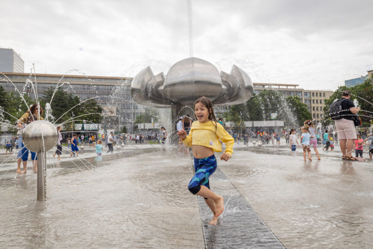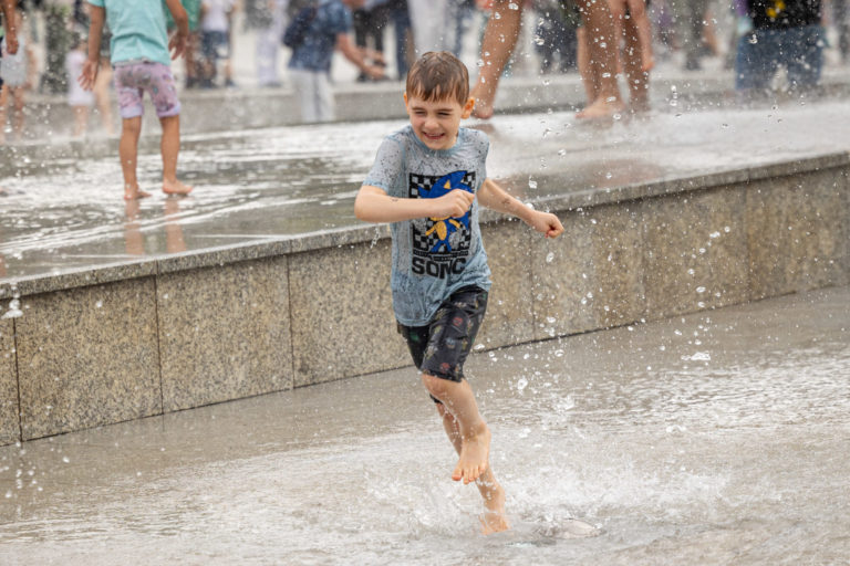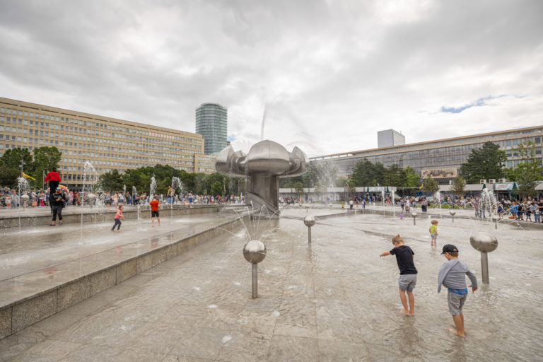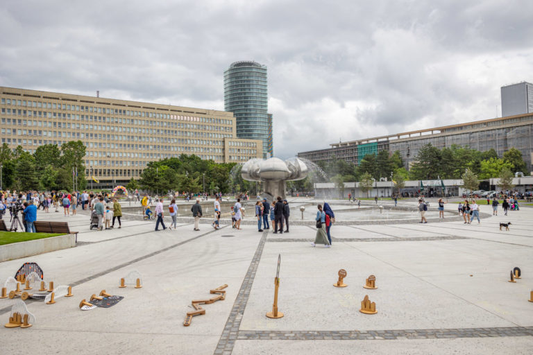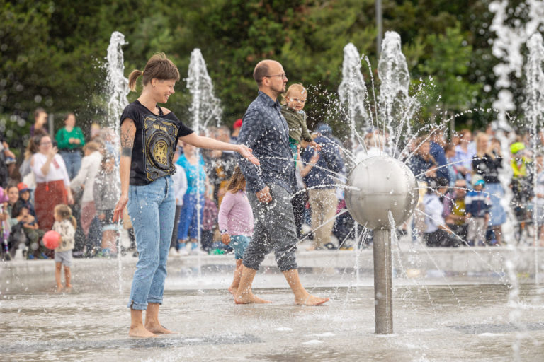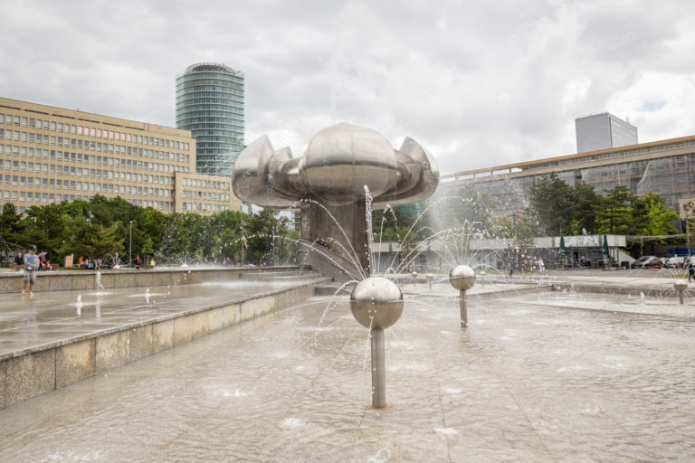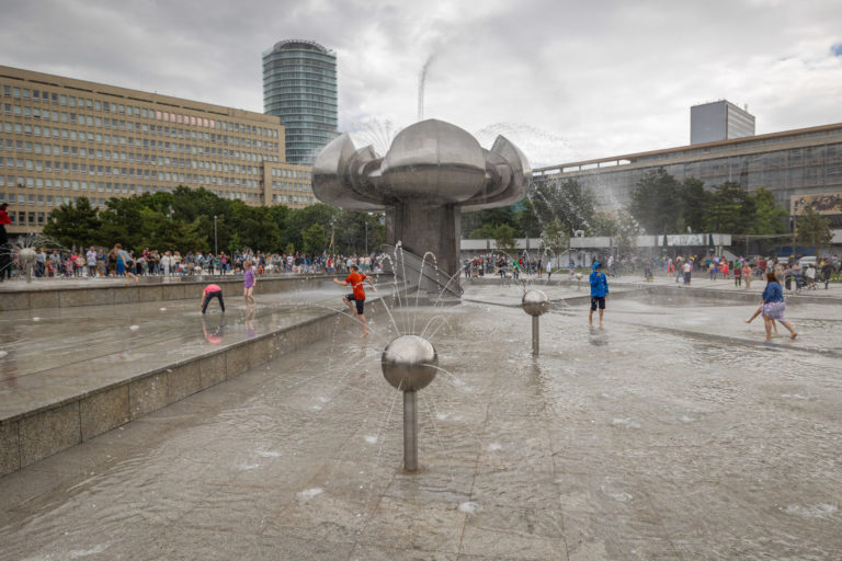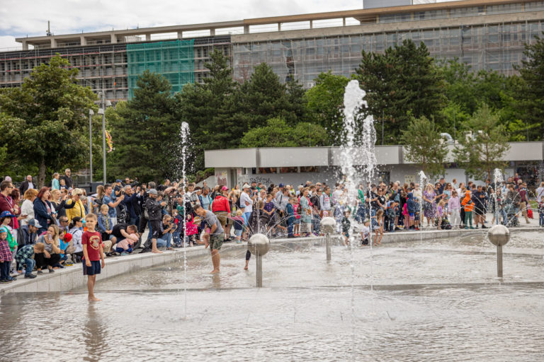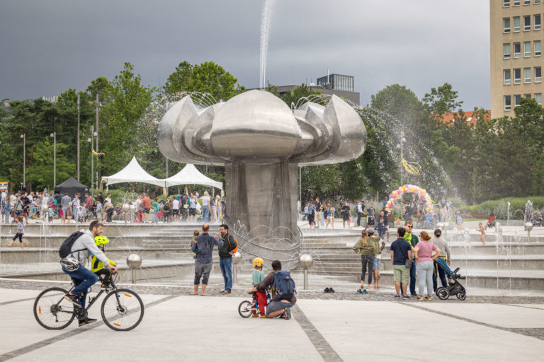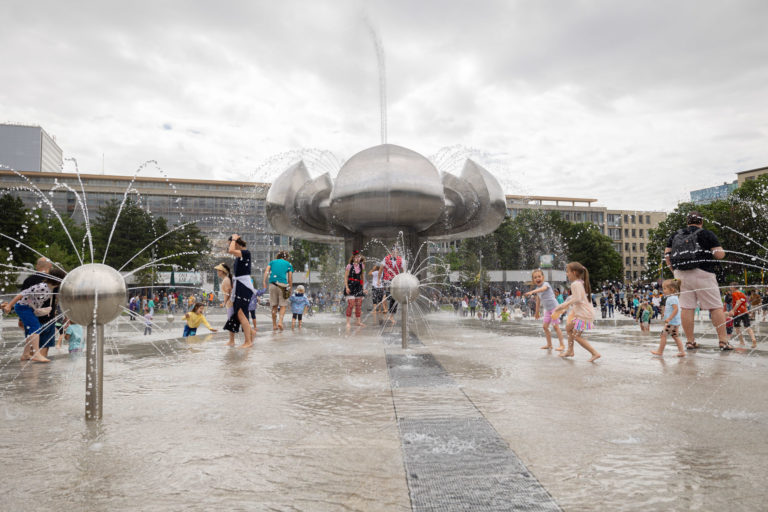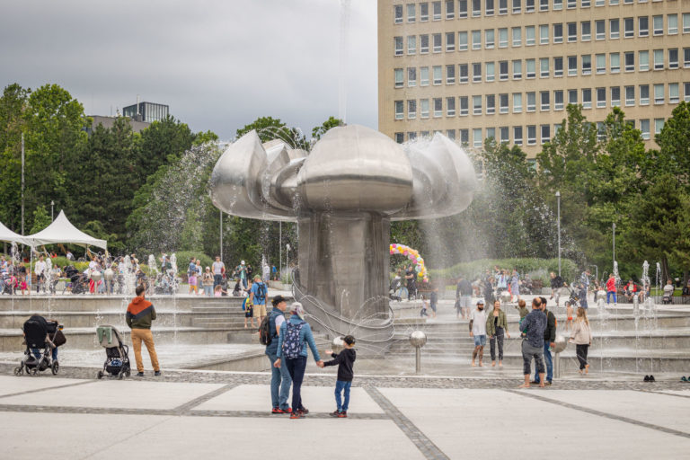 Atmosféra počas oficiálneho obnovenia prevádzky fontány Družba na bratislavskom Námestí slobody. Bratislava, 24. jún 2023. Foto: SITA/Jana Birošová.