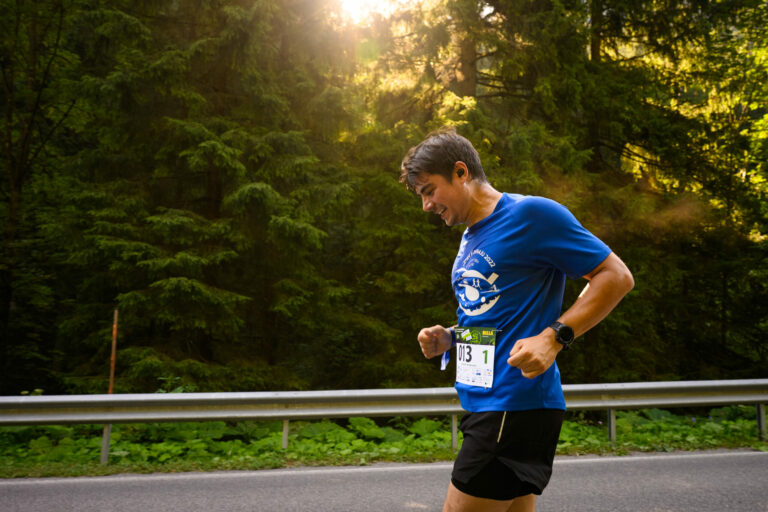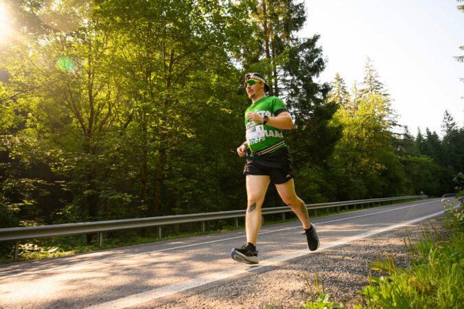 Bežec počas 13. ročníka štafetového behu tímov s názvom od Tatier k Dunaju, ktorý začal v Jasnej v Nízkych Tatrách a končí 17. augusta na Tyršovom nábreží Dunaja v Bratislave. Bratislava, 16. august 2025. Foto: SITA/Od Tatier k Dunaju