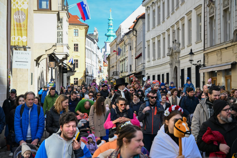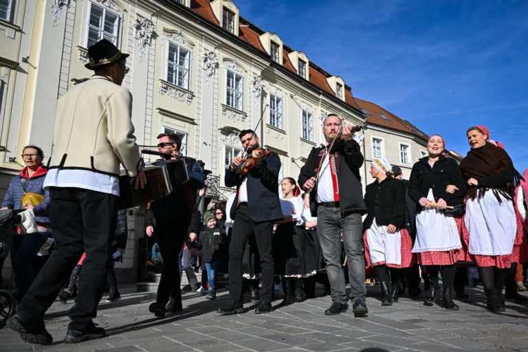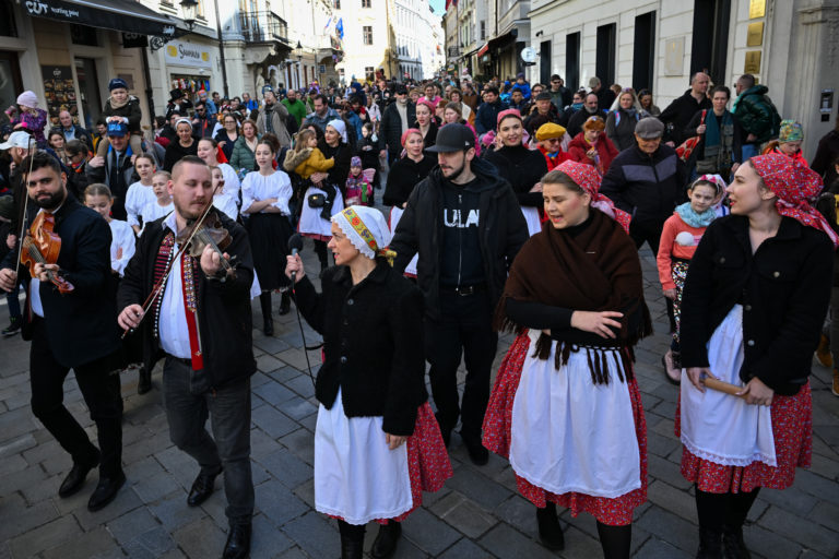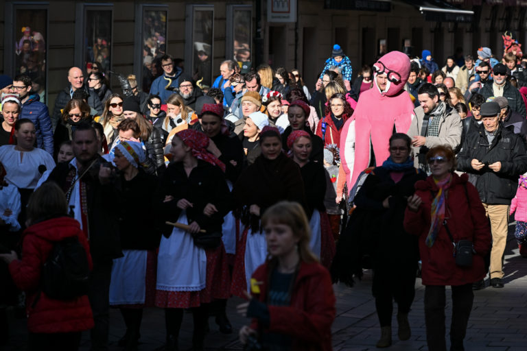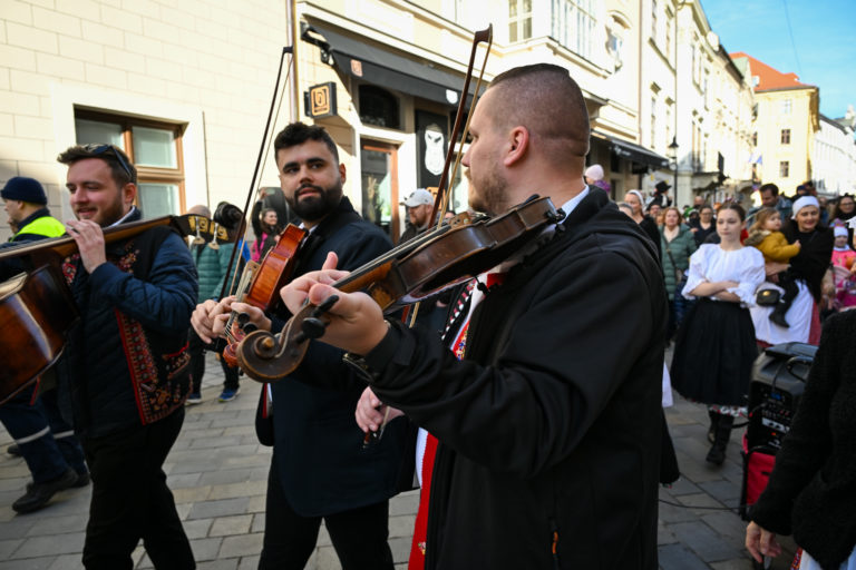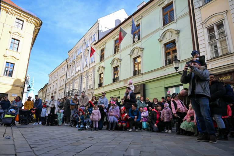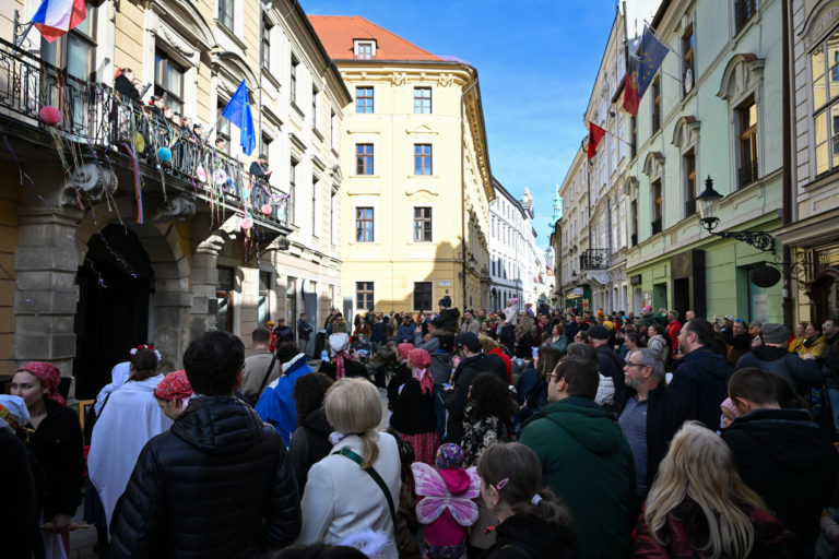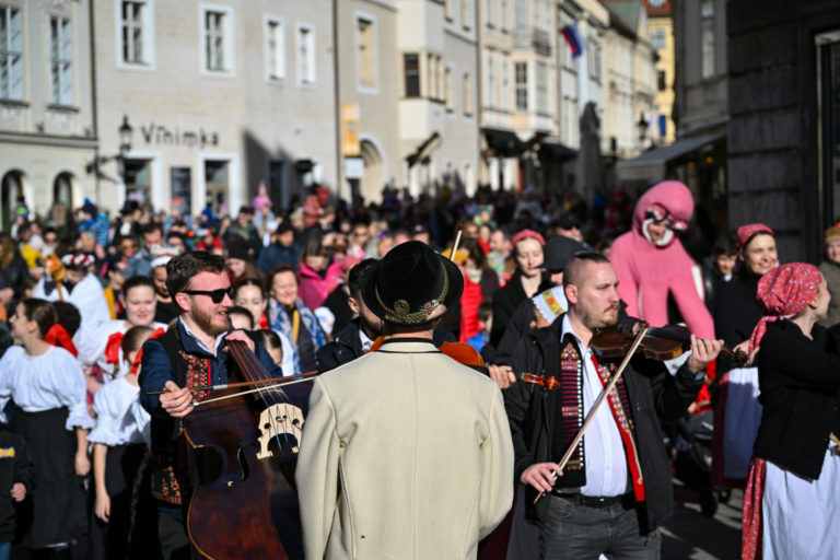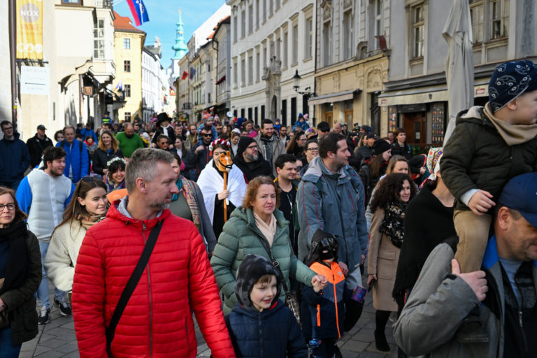 Staromestský fašiangový sprievod počas druhého ročníka Bratislavských fašiangov v uliciach historického centra Bratislavy. Bratislava, 10. február 2024. Foto: SITA