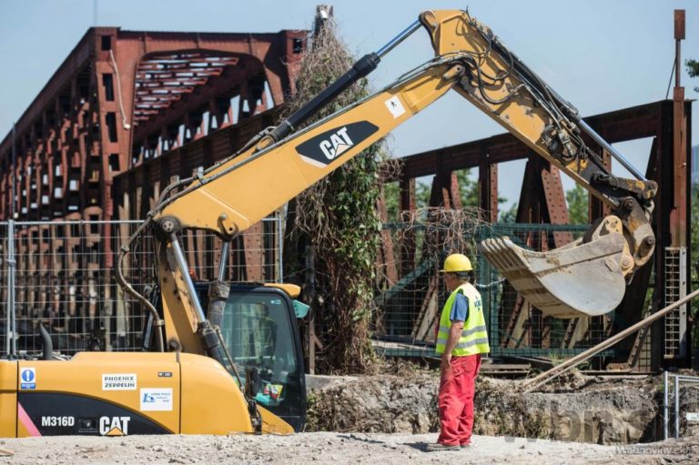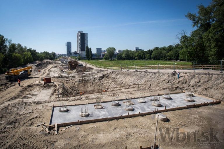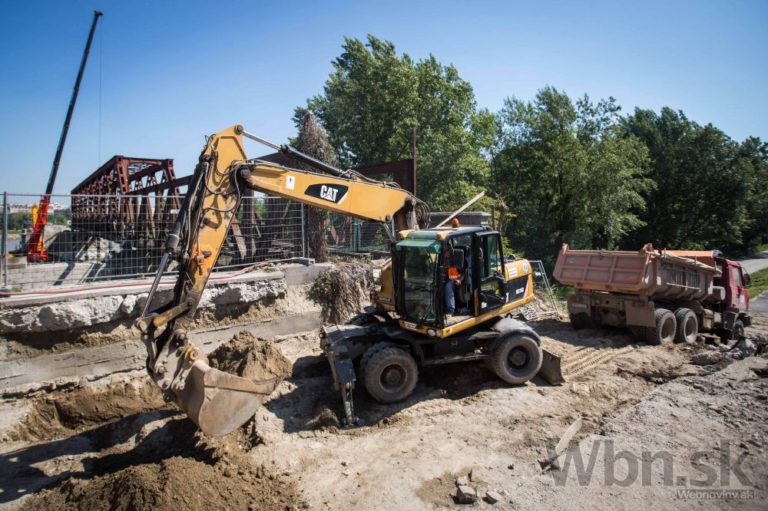 Pohľad na Starý most počas demontáže pri príležitosti kontrolného dňa na stavbe prvej etapy Nosného dopravného systému - prestavby Starého mosta a budovania električkovej trate do Petržalky. Bratislava, 21. máj 2014. Foto: SITA/Jozef Jakubčo