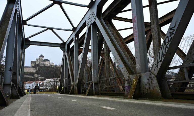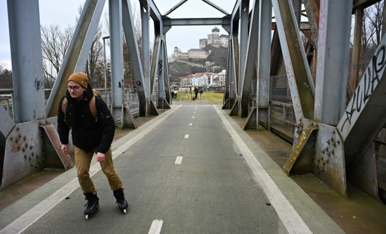Pohľad na starý železničný most v Trenčíne pred začatím jeho prestavby na dvojpodlažný promenádny a pobytový zelený Fiesta most. Trenčín, 23. január 2025. Foto: SITA/Tomáš Somr