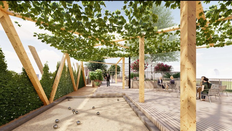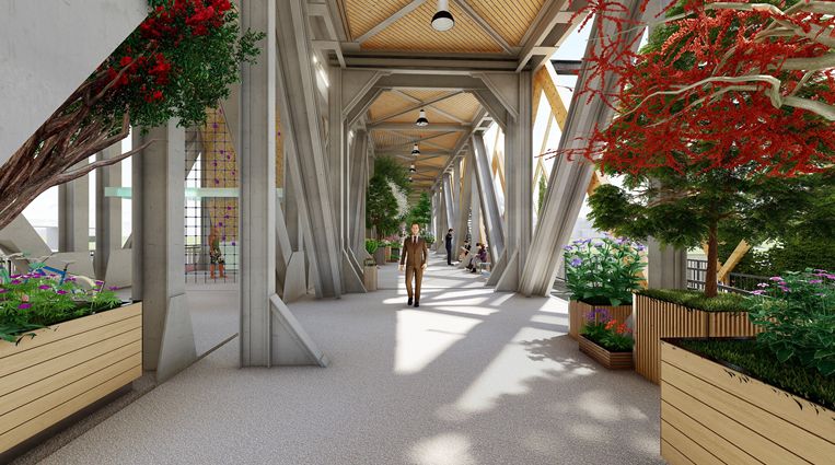 Vizualizácia dvojpodlažného promenádneho a pobytového zeleného Fiesta mosta v Trenčíne. Trenčín, 23. január 2025. Foto: SITA/Mesto Trenčín