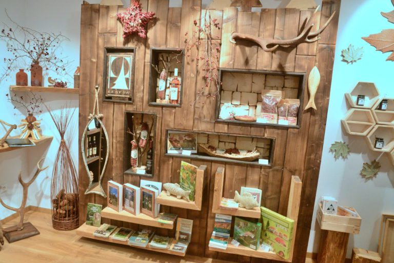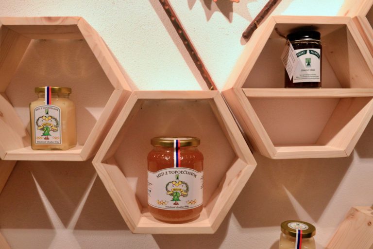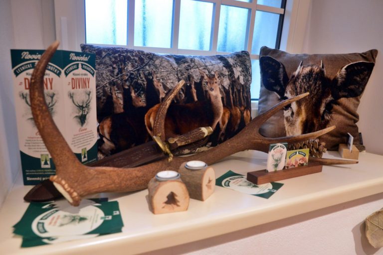 Výrobky z diviny v predajni Lesnícke pochúťky počas jej slávnostného otvorenia v budove LESY SR v Banskej Bystrici za účasti ministerky pôdohospodárstva a rozvoja vidieka SR a generálneho riaditeľa LESY Slovenskej republiky. Banská Bystrica, 31. január 2020. Foto: SITA/Jakub Julény