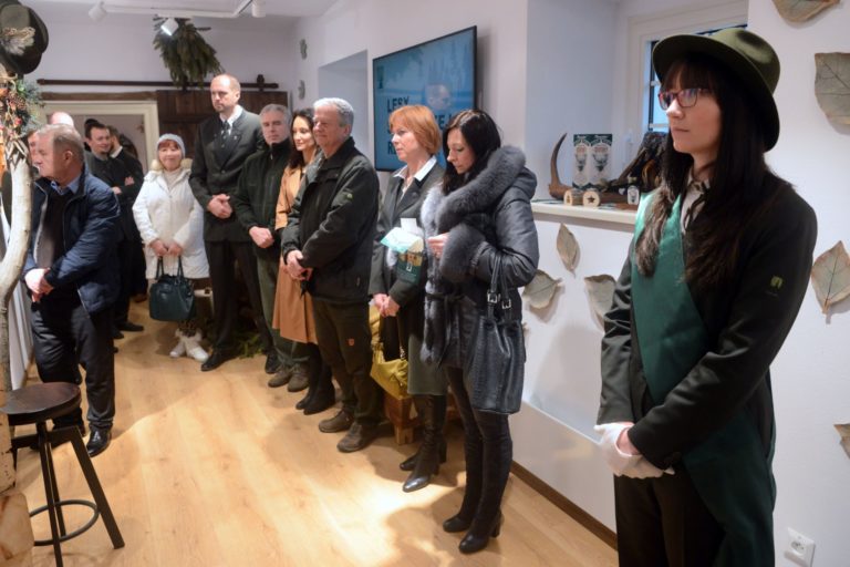 Účastníci počas slávnostného otvorenia predajne Lesnícke pochúťky v budove LESY SR v Banskej Bystrici za účasti ministerky pôdohospodárstva a rozvoja vidieka SR a generálneho riaditeľa LESY Slovenskej republiky. Banská Bystrica, 31. január 2020. Foto: SITA/Jakub Julény