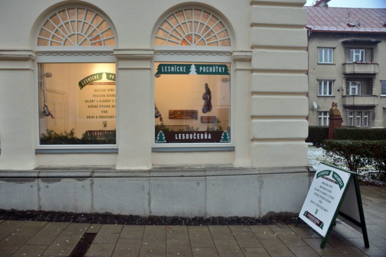 Interiér predajne Lesnícke pochúťky počas jej slávnostného otvorenia v budove LESY SR v Banskej Bystrici za účasti ministerky pôdohospodárstva a rozvoja vidieka SR a generálneho riaditeľa LESY Slovenskej republiky. Banská Bystrica, 31. január 2020. Foto: SITA/Jakub Julény
