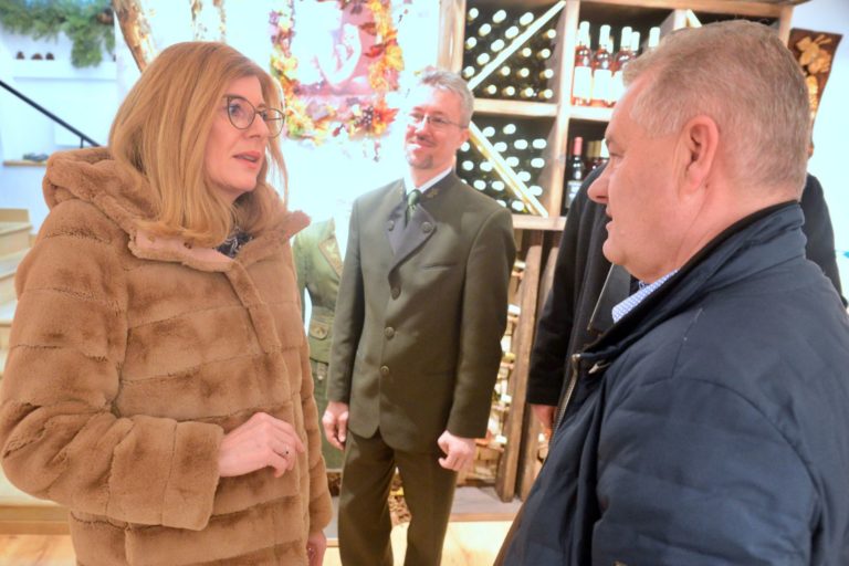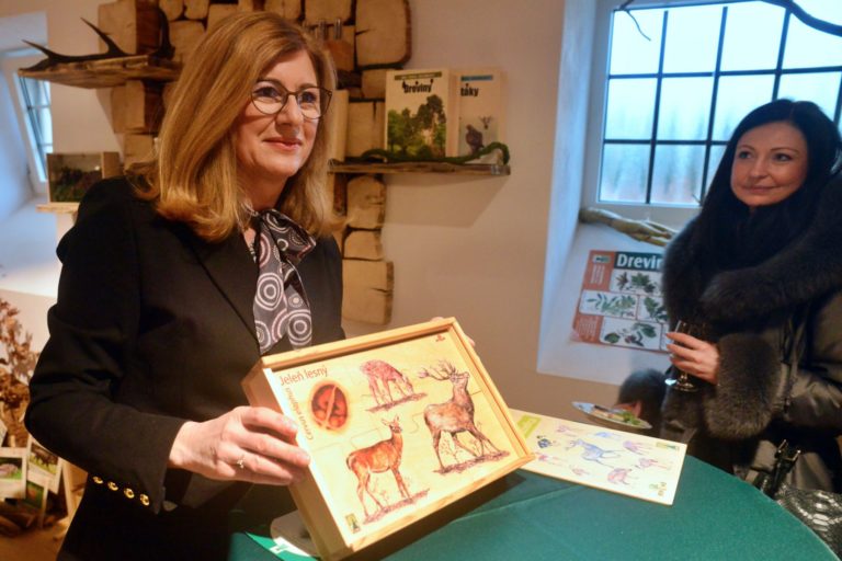Ministerka pôdohospodárstva a rozvoja vidieka Gabriela Matečná (vľavo) počas slávnostného otvorenia predajne Lesnícke pochúťky v budove LESY SR v Banskej Bystrici. Banská Bystrica, 31. január 2020. Foto: SITA/Jakub Julény