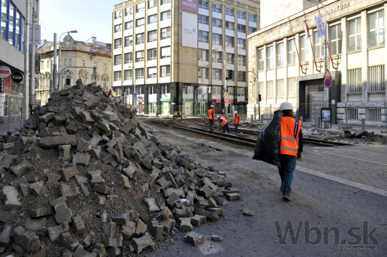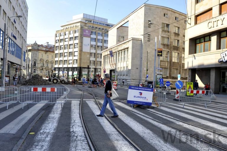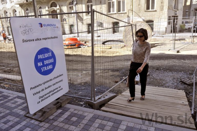 Aktuálny stav prác na Štúrovej ulici. Po rekonštrukcii križovatky Jesenského – Štúrova električky budú cez vynovenú Štúrovu ulicu v Bratislave jazdiť obojsmerne. Bratislava, 10. júl 2015.