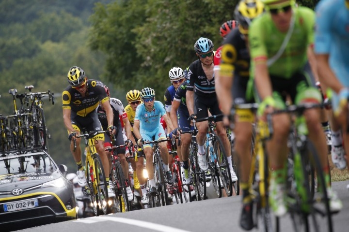 Cyklisti počas siedmej etapy Tour de France, ktorá viedla z L´Isle-Jourdain do Lac de Payolle a merala 162,5 kilometrov. Foto: SITA/AP