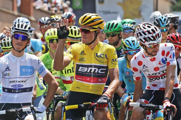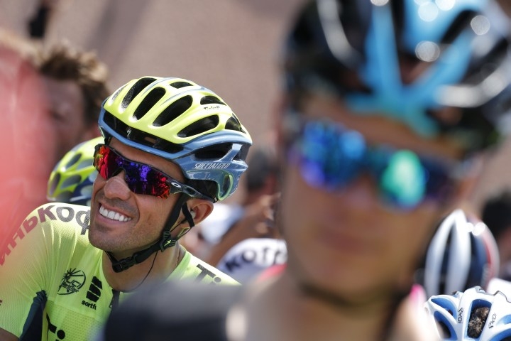 Španiel Alberto Contador pred štartom siedmej etapy Tour de France, ktorá viedla z L´Isle-Jourdain do Lac de Payolle a merala 162,5 kilometrov. Foto: SITA/AP