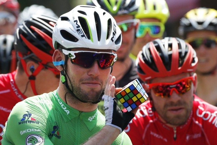 Brit Mark Cavendish (v zelenom) pred štartom siedmej etapy Tour de France, ktorá viedla z L´Isle-Jourdain do Lac de Payolle a merala 162,5 kilometrov. Foto: SITA/AP