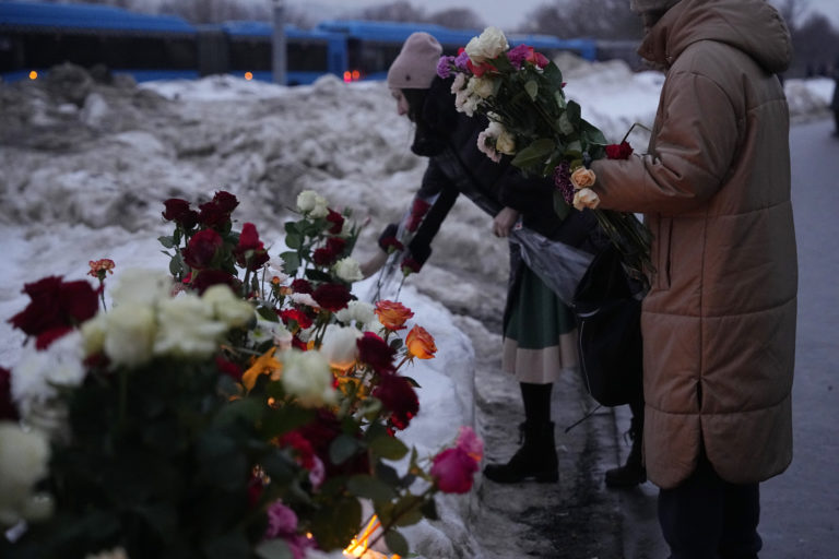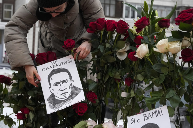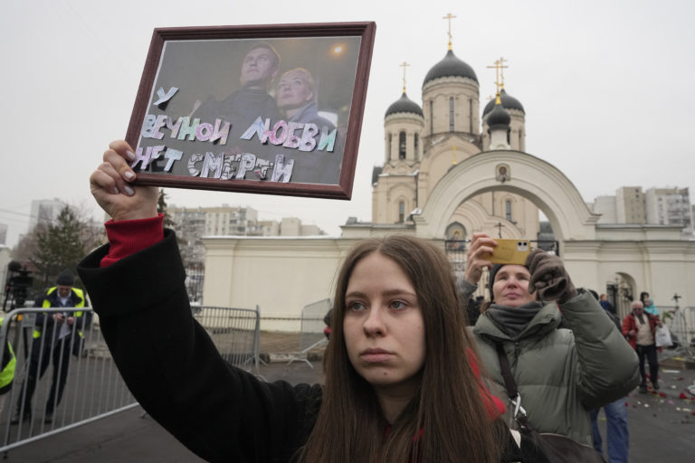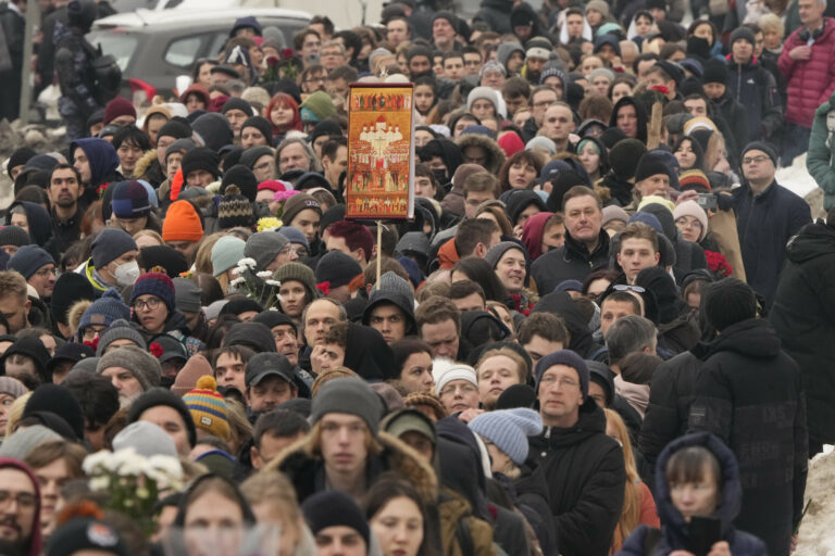 Príbuzní a priatelia vzdávajú posledný hold Alexejovi Navaľnému v moskovskom kostole. Foto: SITA/AP.