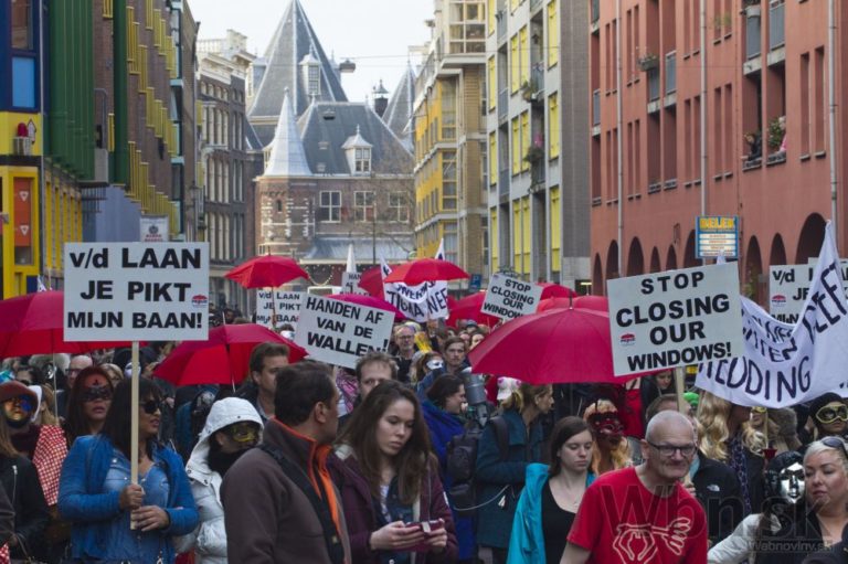 Protestanti, ktorých väčšina mala zahalené tváre, pochodovali k budove magistrátu, kde odovzdali petíciu za zachovanie výkladov v časti mesta známej ako De Wallen alebo Rosse Buurt.