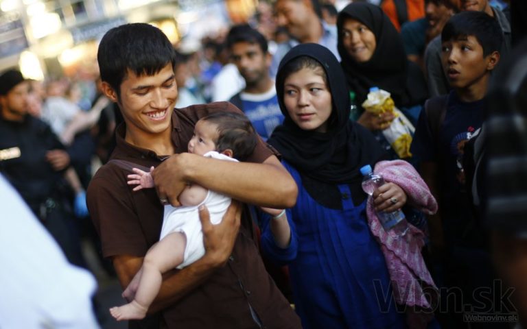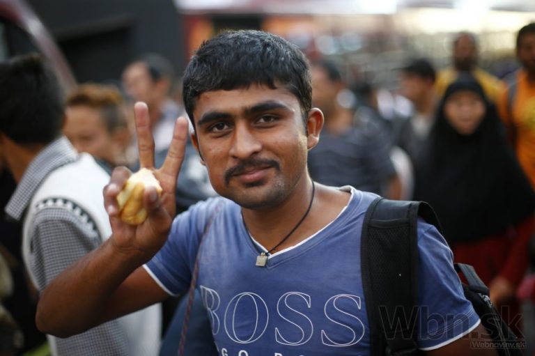 Utečenci boli viditeľne unavení, niektorí mali na rukách deti. Popri príslušníkoch polície ich očakávali aj dobrovoľníci, ktorí im ponúkali minerálku a ovocie. Presný počet migrantov však nie je známy, pretože kontroly sa fakticky nekonali. Foto: SITA/AP