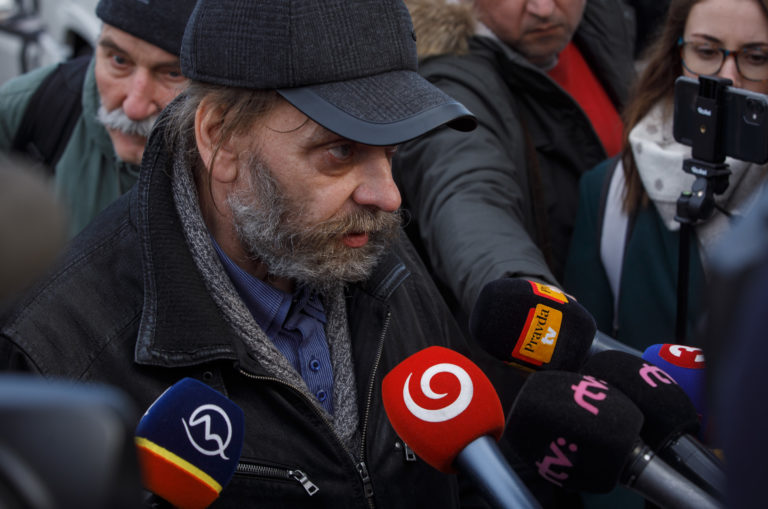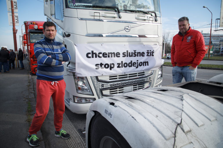 Člen predsedníctva UNAS Stanislav Skala počas štrajku zástupcov Únie autodopravcov Slovenska (UNAS) proti daňovému zaťaženiu. Foto: SITA/Branislav Bibel