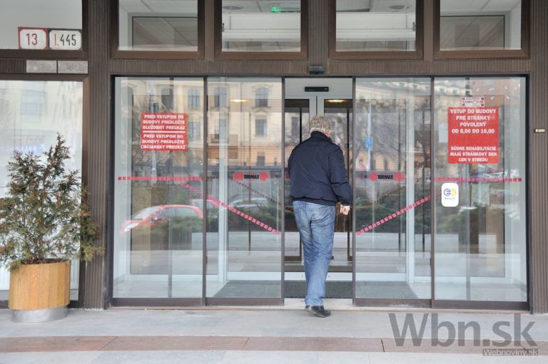 Pohľad cez zatvorené dvere na prázdnu chodbu Krajského súdu v Trenčíne počas jednodňového výstražného štrajku zamestnancov okresných a krajských súdov v SR pre zlú sociálno-ekonomickú situáciu v rezorte MS SR. Trenčín, 19. február 2015. Foto: SITA/Tomáš Somr
