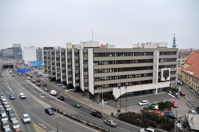 Na snímke budova Najvyššieho súdu Slovenskej republiky (NSSR) na Župnom námestí v Bratislave. Najvyšší súd SR sa priamo jednodňového výstražného štrajku zamestnancov okresných a krajských súdov v SR nezúčastní. Na znak vyjadrenia podpory si môžu zamestnanci NS SR pripnúť v tento deň červenú stuhu. Bratislava, 19. február 2015. Foto: SITA/Robert Tappert