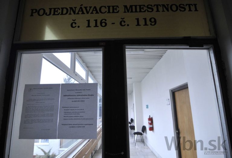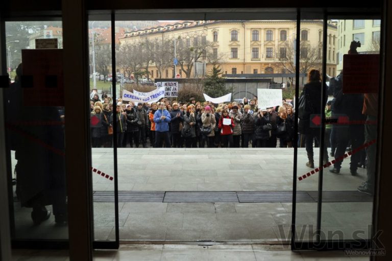 Budova Okresného súdu v Trenčíne počas jednodňového výstražného štrajku zamestnancov okresných a krajských súdov v SR pre zlú sociálno-ekonomickú situáciu v rezorte MS SR. Trenčín, 19. február 2015. Foto: SITA/Tomáš Somr