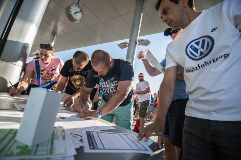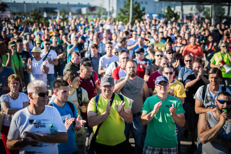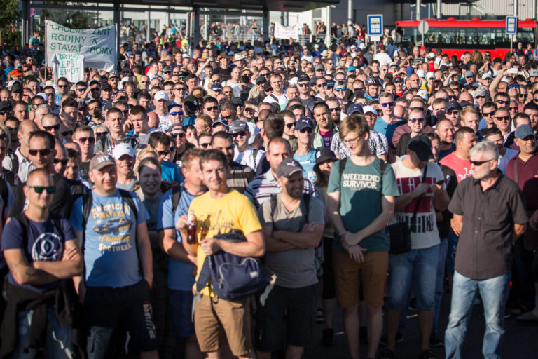 Účastníci štrajku v automobilke Volkswagen. Bratislava, 20. jún 2017. Foto: SITA/Marko Erd