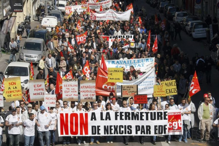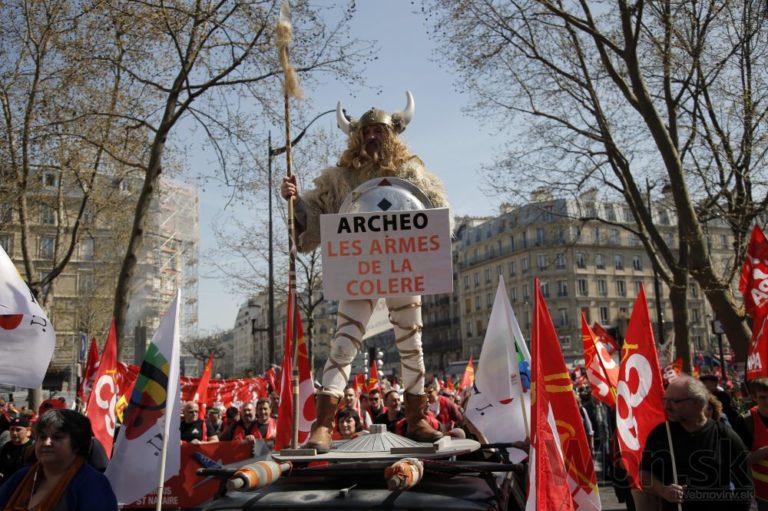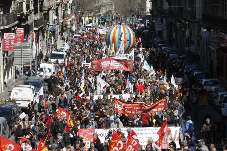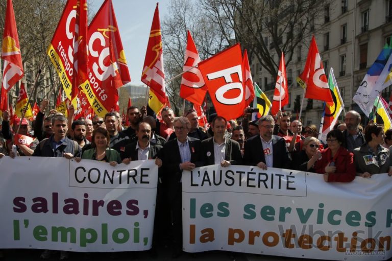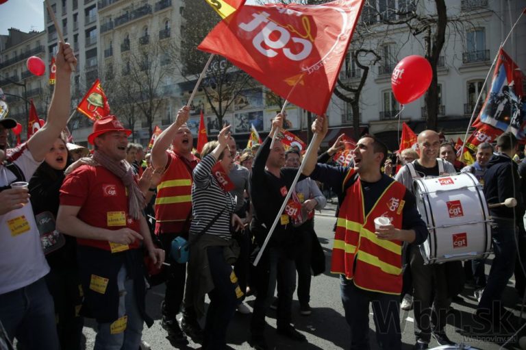 Ulicami Paríža pochodovali tisíce demonštrantov s píšťalkami a odborovými symbolmi, aby podporili rôznorodé hnutie pracovníkov verejného i súkromného sektora.