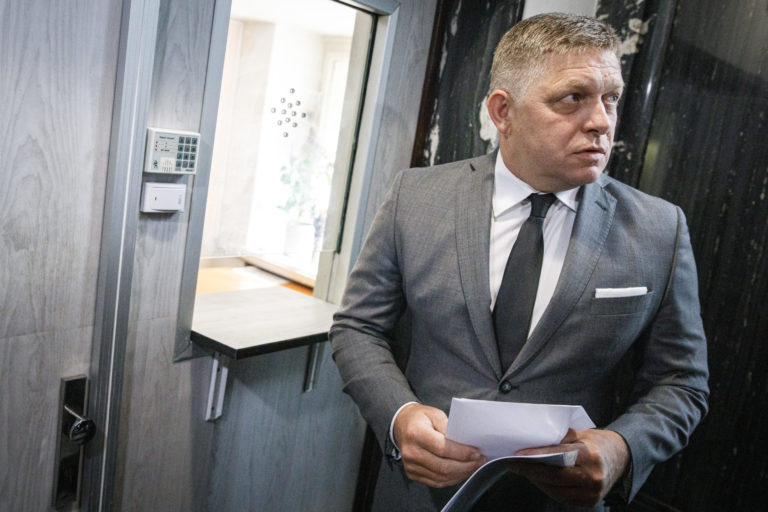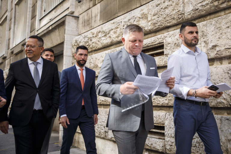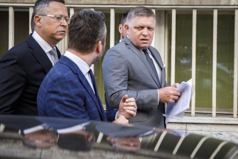 Predseda strany SMER-SD Robert Fico podáva trestné oznámenie na podateľni Generálnej prokuratúry SR pre podozrenie zo spáchania zločinu sabotáže. Bratislava, 17. august 2022. Foto: SITA/Branislav Bibel