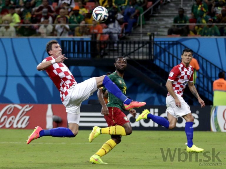 Chorvátsky futbalista Mario Mandzukič si spracováva loptu počas strejdajšieho zápasu A-skupiny na svetovom šampionáte v Brazílii. Foto: SITA/AP
