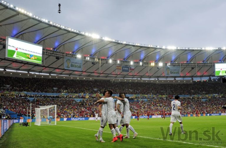 Radosť futbalistov Čile po góle Eduarda Vargasa v sieti Španielska počas stredajšieho zápasu B-skupiny na svetovom šampionáte v Brazílii. Foto: SITA/AP