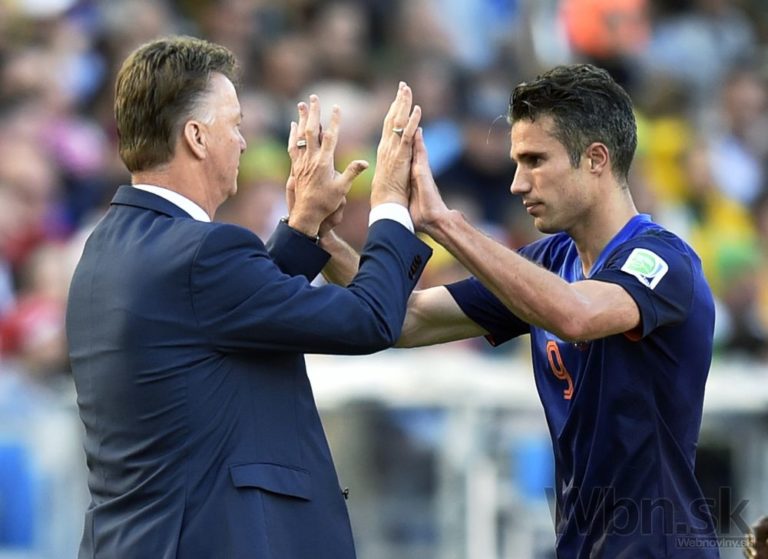Tréner Holandska Louis van Gaal povzbudzuje Robina van Persieho počas zápasu s Austráliou na šampionáte v Brazílii. Foto: SITA/AP