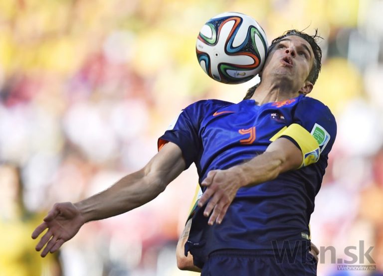 Holandský futbalista Robin van Persie počas zápasu s Austráliou na svetovom šampionáte v Brazílii. Foto: SITA/AP