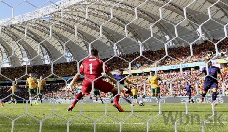 Holanďan Robin van Persie (v strede) skóruje počas stredajšieho zápasu proti Austrálii na svetovom šampionáte v Brazílii. Foto: SITA/AP