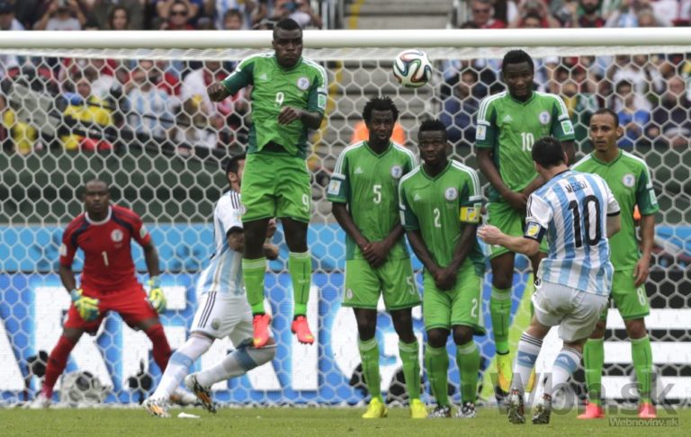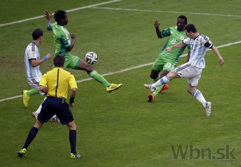 Argentínska hviezda Lionel Messi strieľa gól do nigérijskej siete počas stredajšieho zápasu F-skupiny na svetovom šampionáte v Brazílii. Foto: SITA/AP