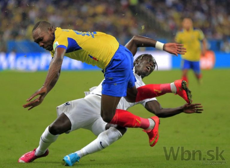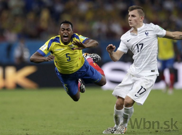 Francúz Moussa Sissoko v súboji s ekvádorským futbalistom Juanom Paredesom počas stredajšieho zápasu E-skupiny na svetovom šampionáte v Brazílii. Foto: SITA/AP