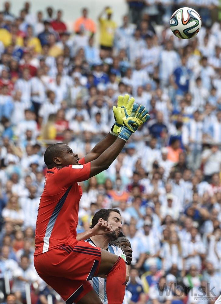 Zákrok nigérijského brankára Vincenta Enyeamu po strele jedného z argentínskych futbalistov počas stredajšieho zápasu F-skupiny na svetovom šampionáte v Brazílii. Foto: SITA/AP