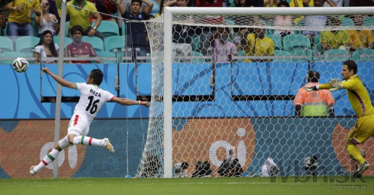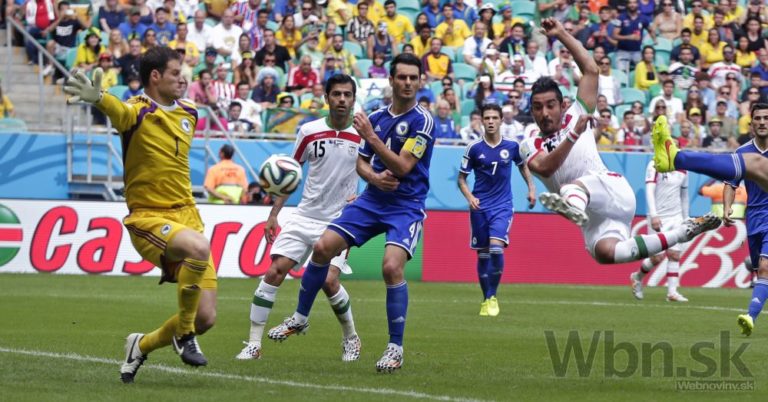 Iránčan Reza Ghoochannejhad strieľa na brankára Bosny a Hercegoviny počas stredajšieho zápasu F-skupiny na svetovom šampionáte v Brazílii. Foto: SITA/AP