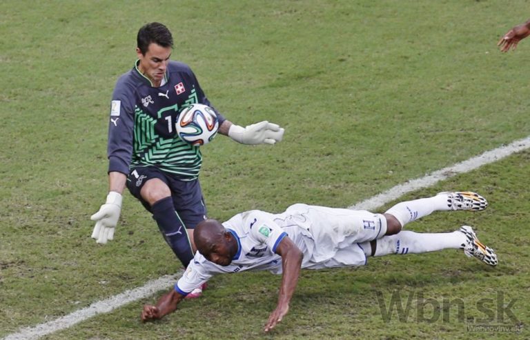 Švajčiarsky brankár Diego Benaglio chytá loptu po zakončení honduraského futbalistu Jerryho Palaciosa počas stredajšieho zápasu E-skupiny na svetovom šampionáte v Brazílii. Foto: SITA/AP