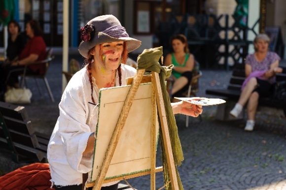 Pouličná maliarka počas podujatia VI. Stredoveký deň v Žiline. Foto: SITA/Milo Fabian