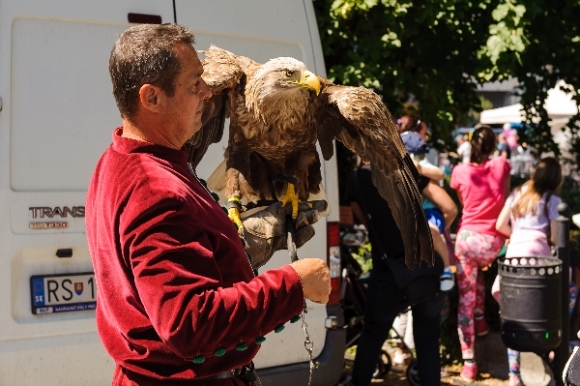 Sokoliar zo združenia Aquila počas podujatia VI. Stredoveký deň v Žiline. Foto: SITA/Milo Fabian