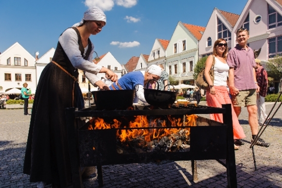 Členovia združenia Terra de Selinan predvádzajú dobovú prípravu stravy počas podujatia VI. Stredoveký deň v Žiline. Foto: SITA/Milo Fabian