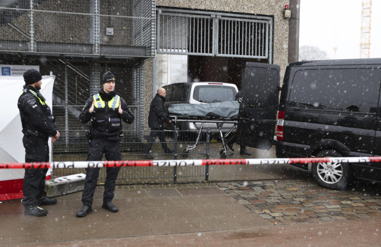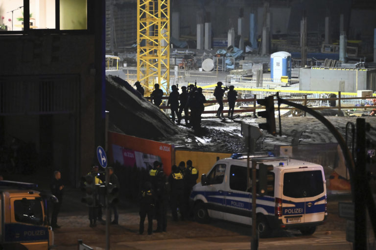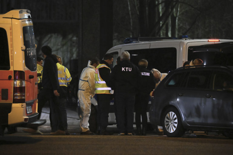Nemecká polícia tvrdí, že v budove používanej jehovistami v Hamburgu sa strieľalo a neurčený počet ľudí bol zabitý alebo zranený. Foto: SITA/AP